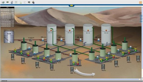 污水处理是对二次使用的水质按相关参数要求进行净化的过程。系统通过对药剂流量和进水流量的检测,用智能化算法控制药剂的注入时机和剂量,结合沉降、过滤、回收再处理等工艺实现污水的自动控制处理。控制系统实时显示药剂的流量、药剂的浓度、变频器频率等工艺回路相关信息,辅助以新工艺新技术,提高采油污水回用和资源化利用效率。本系统包括有全线数据监控,实现药剂添加自动化处理,远程控制控制沉降、过滤、回收再处理等工艺,辅以数据告警统计,操作事项管理,历史数据管理实现污水处理过程的远程监控和自动化。同时为客户提供真实3D场景展示,更直观的展现处理实况和进行人员培训。